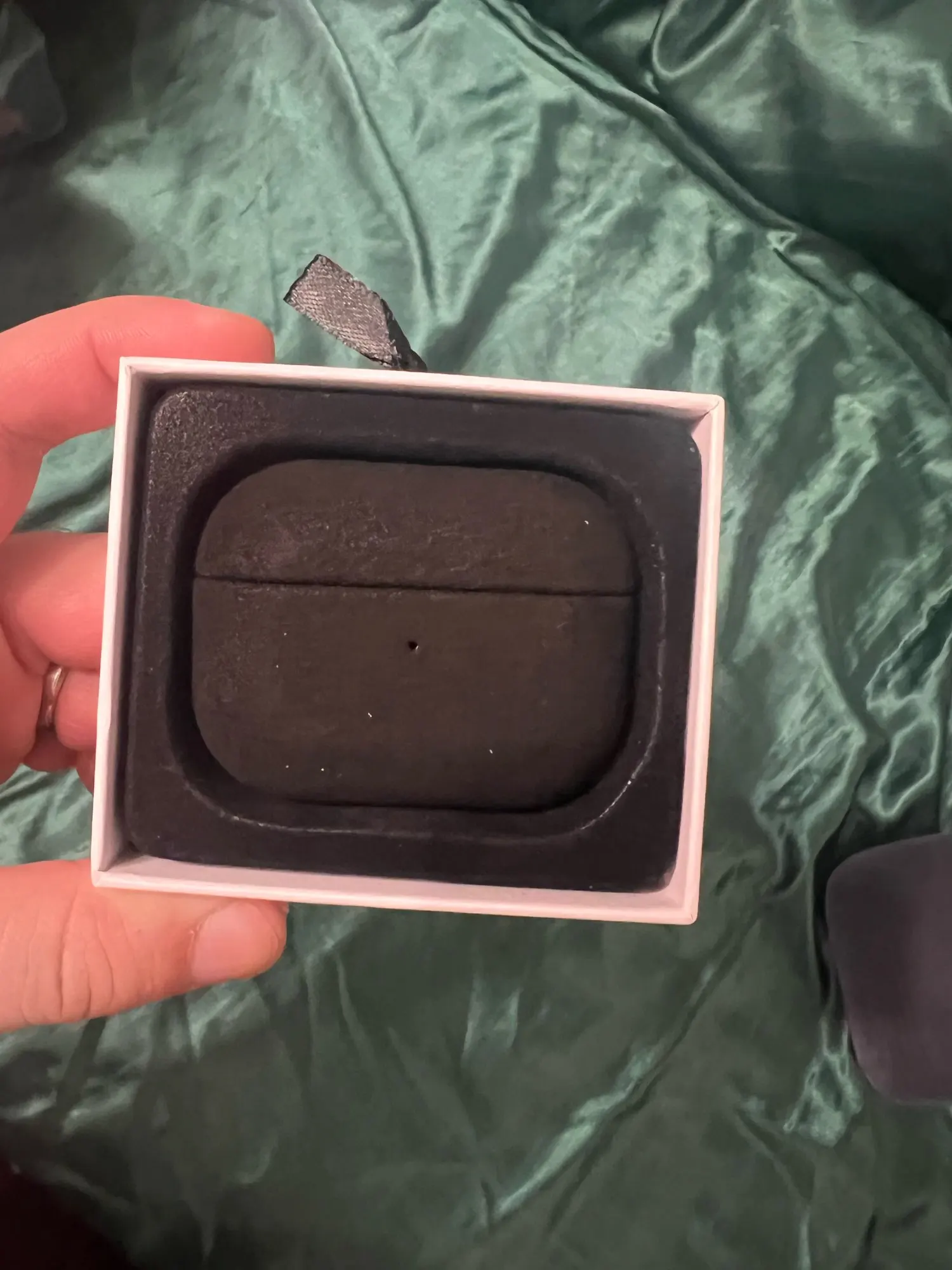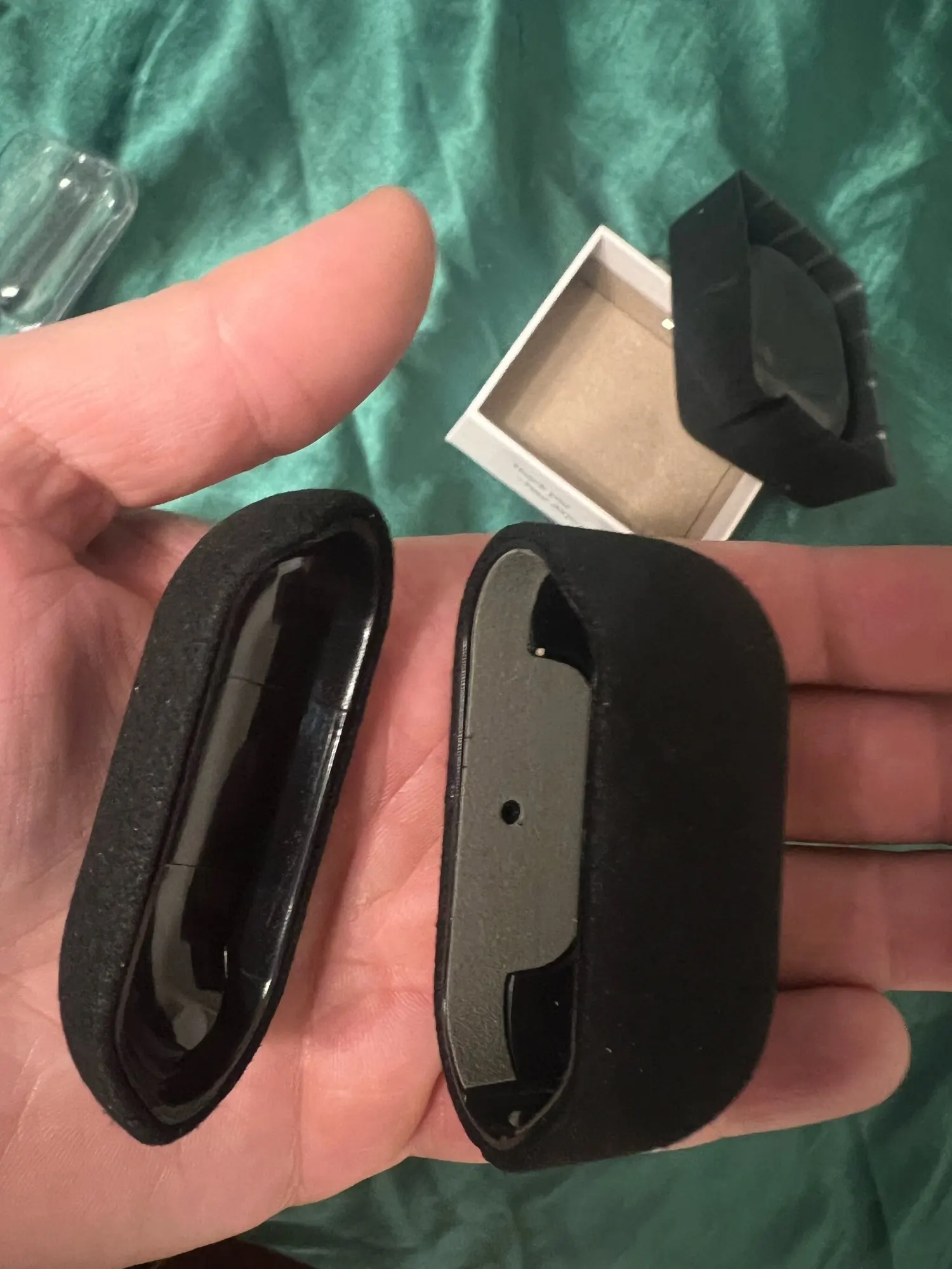 • Align and gently press each half of the Alcantara case onto the AirPods