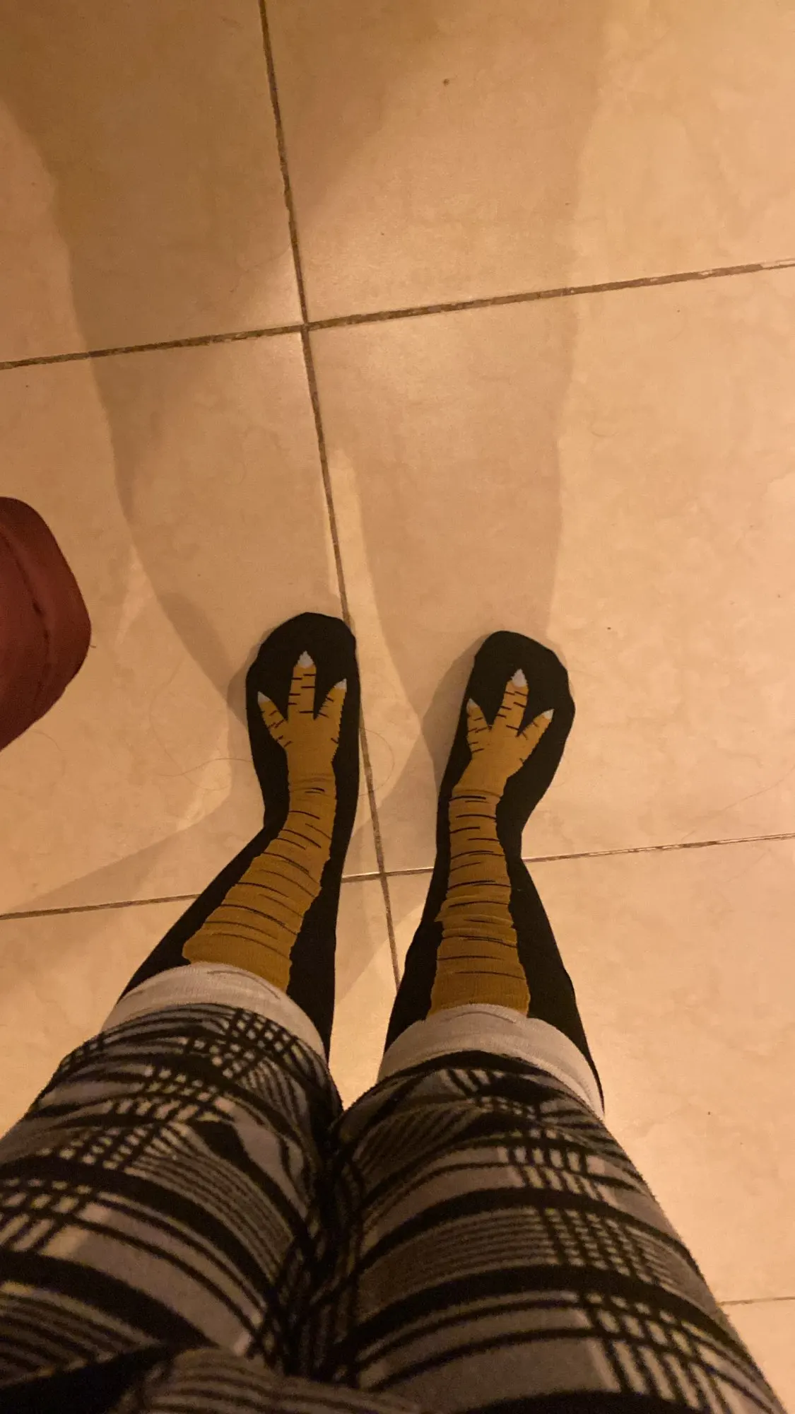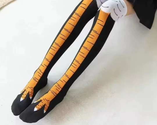 Show off your quirky side with the Chicken Feet Socks — knee-high novelty socks designed to transform your legs into clucking chicken legs. With ultra-realistic feather and claw prints, these socks are a guaranteed conversation starter and a perfect gag gift or costume accessory.